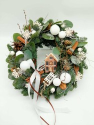 Závěsný věnec, 25/35 cm. Neopadavá jedle Nobilis a eukalypt. Vyzvednutí v Kladně, Vodárenská 2381.