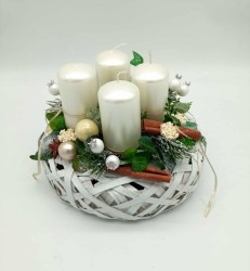Svícen adventní, proutěný základ, trvanlivý, průměr 25cm.