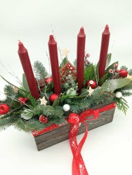 Adventní svícen, živé chvojí, základ šíře 30cm, celková šíře 50cm.